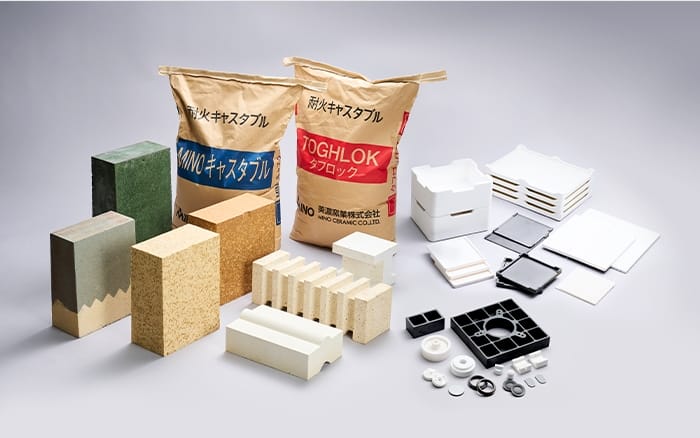 耐火物メーカーとして、耐火物の製造技術から派生、発展し耐火物などを製造する上で欠かせない炉材やバーナーの製造、炉内で使用する焼成用道具材まで一貫して製造・販売をしております。